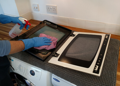 A: Our oven cleaning service is a full valet service, so we take apart the oven as much as we possibly can, including the door if it isn't sealed.
